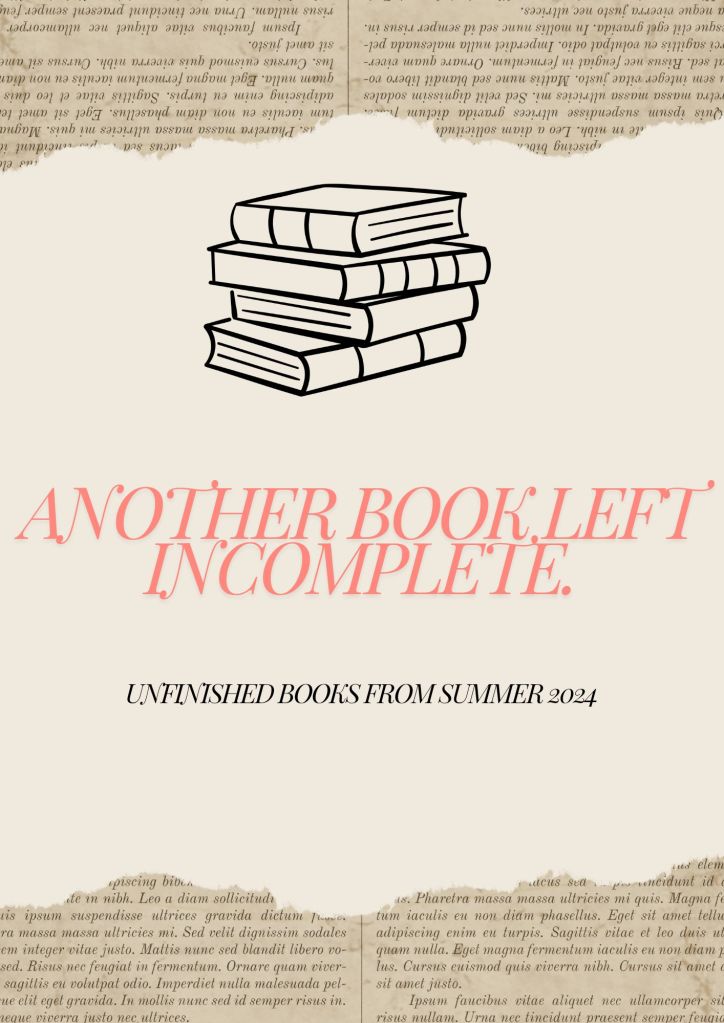 A summer update would not be complete without books. I started and said, “Ehhh, maybe later,” or I just gave up on it. So far, three books from this summer are on my “I will get back to it” list, aka the Unfinished Book Club. This club is not about guilt or pressure on anyone to finish books but a celebration of the diverse reading experiences that we all encounter. It is a space to share our thoughts, recommendations, and unfinished reads. The Unfinished Book Club is a community where we can discuss our reading experiences, share recommendations, and support each other in our reading journeys. Life happens, and it would be lovely to read daily, but life is life. I created this blog to launch a hobby writing habit and talk about books I like while I drink wine, whiskey, or water. Below are the three books I will reevaluate in the fall of 2024 or sometime in 2025, whichever comes first.